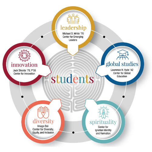 Rooted in Jesuit education, the Center for Ignatian Identity & Formation helps students strengthen their relationship with God and live out their faith through reflection, prayer, retreats, and service. It emphasizes personal growth and commitment to the greater good.