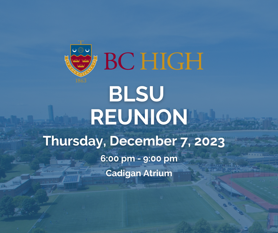 Please join us on Thursday, December 7, for BC High's second annual BLSU Reunion! Enjoy a night filled with food, drinks, and a chance to connect with current BLSU students and fellow BLSU alumni.