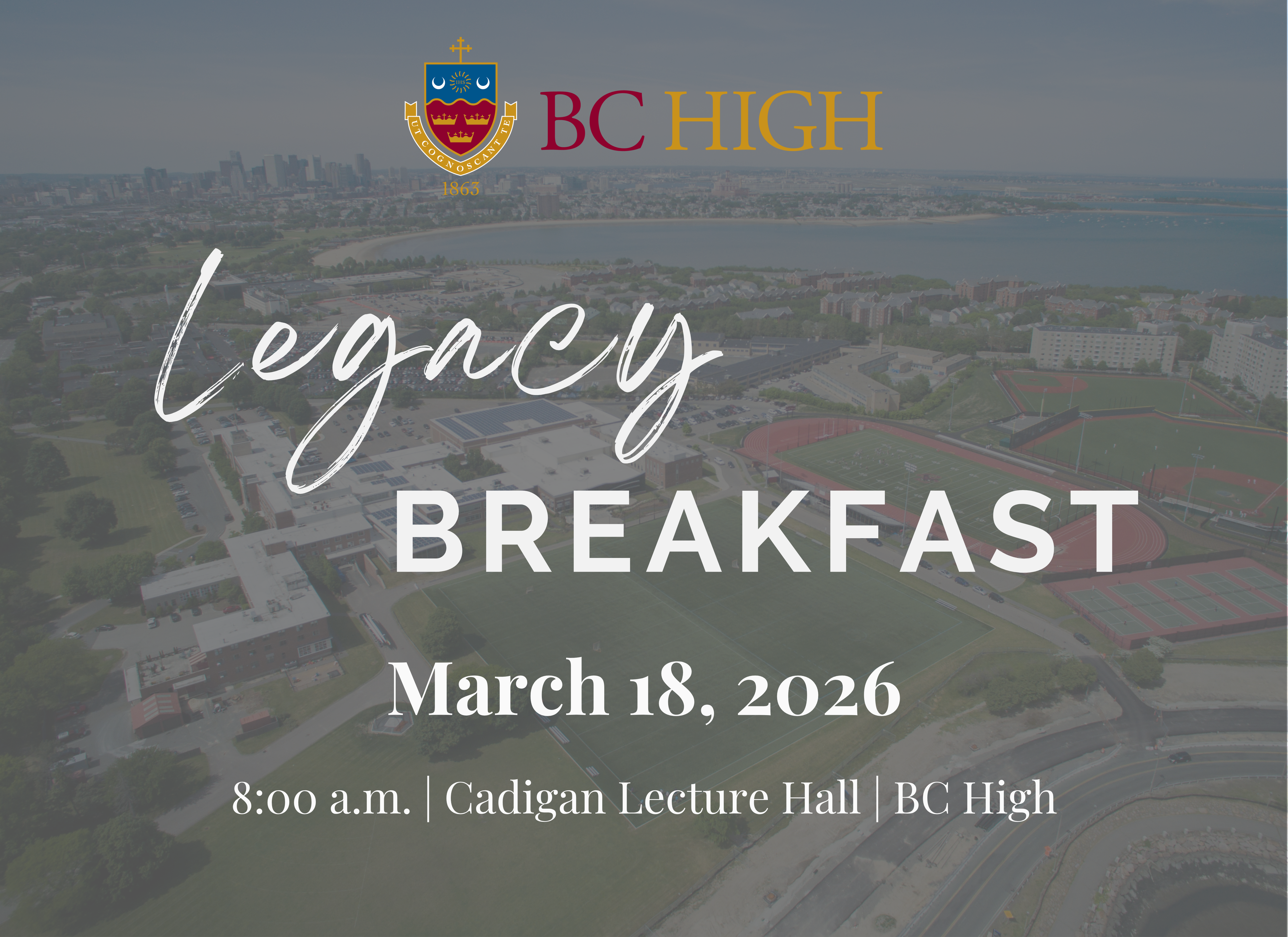 BC High alumni fathers, male guardians, and grandfathers with current students are invited to join us for our annual Legacy Breakfast on Wednesday, March 18, at 8 a.m. in the Cadigan Lecture Hall.