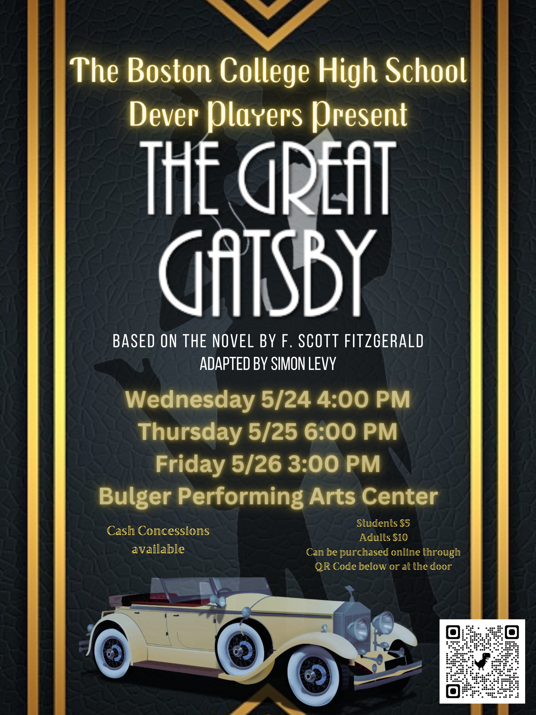 Join us in the Bulger Performing Arts Center for the Dever Players spring drama, The Great Gatsby!