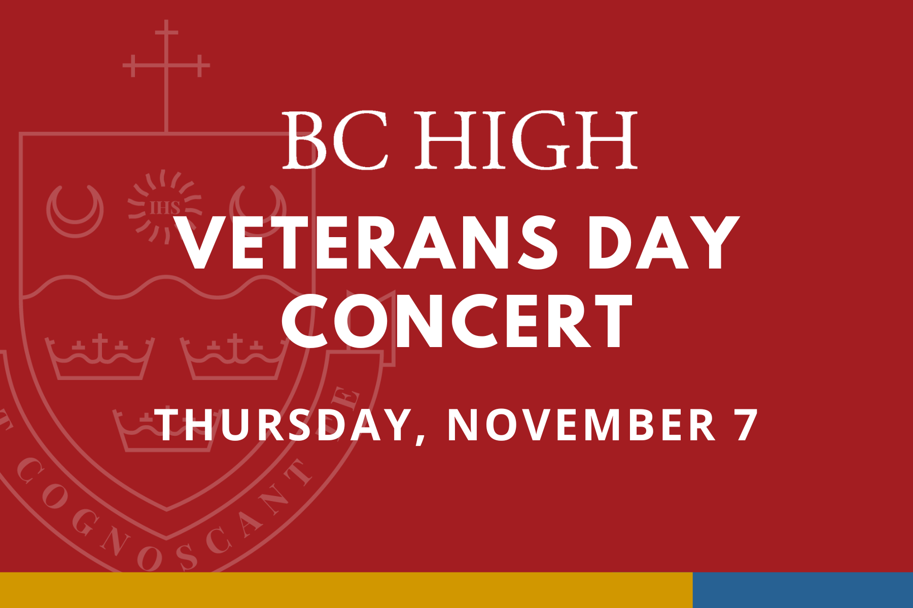 Join President Grace Cotter Regan P'12 and Principal Adam Lewis P'28, '30 for a special event in honor of Veterans Day.  BC High's Concert Choir will conduct a special performance. Prior to the performance we will host a breakfast in Murphy Alumni Room.  The event will provide members of the BC High community an opportunity to socialize with veteran alumni and learn about their service.